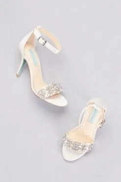A richly embellished vamp and slim ankle strap make this high heel sandal from Betsey Johnson the perfect finish to any evening look.