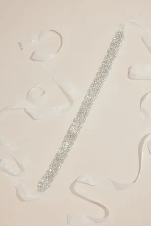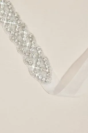Organza ribbon with a slight sheen beautifully frames the twinkling crystal embellishments of this sparkly sash. We love it for giving wedding dresses and party outfits the perfect finishing touch.