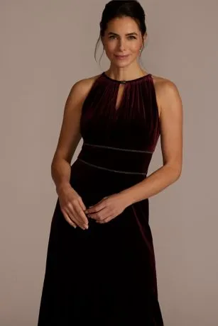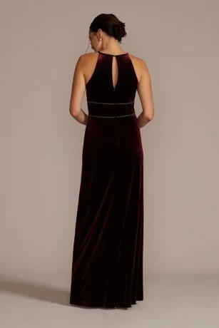 In this dress, there are two major things to celebrate: 1. the occasion you’re attending, and 2. how beautiful you look and feel. Classic, soft velvet is given a modern spin with keyhole details, waist embellishments, and a dramatic skirt slit.