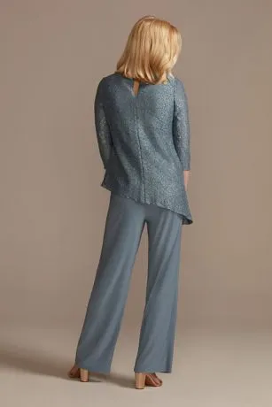 An asymmetrical top adds even more interest to this already chic pantsuit featuring flowing pants and a keyhole back.