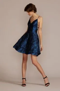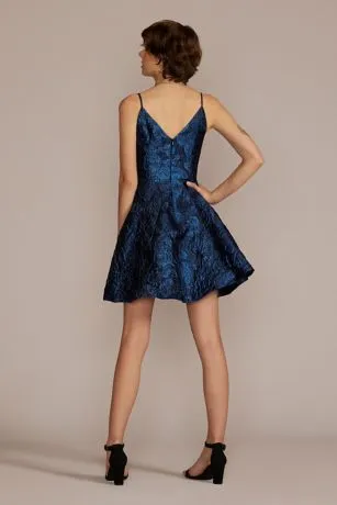 Celebrating comes easy when wearing this mini dress gorgeously detailed with jacquard fabric. The A-line silhouette makes dancing a must.