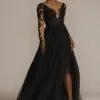 A subtle mermaid gown is always a showstopper. Add a plunge neckline, beaded floral lace appliques, and an illusion button-back, and you’re guaranteed to command your guests’ attention all night long.