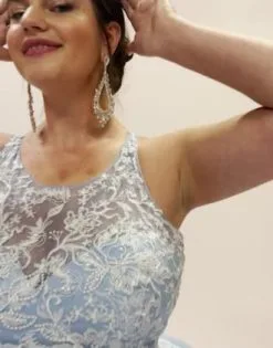 Reminiscent of fairy tales past, this floral lace quince ball gown is simply magical. An appliqued bodice adorned in heat-set stones with a stunning Basque waist adds to the enchantment.