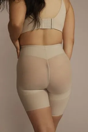 Get the perfect finish with this firm compression shaper short by Leonisa, made from PowerSlim fabric designed to sculpt from your waist to your thighs. A ruched center seam at the back creates a butt-lifting effect while ultra-flat leg bands stay smooth all day long.