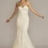 Wear your heart on your sleeves, especially when the sleeves are covered in stunning lace appliques! Romantic touches like a full tulle skirt, sweep train, and V-neckline enhance your natural beauty, so you’re ready to shine on your big day.