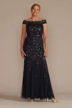 Debut once-in-a-lifetime extravagance in this off-the-shoulder gown, beautifully beaded with opulent details through the bodice and finished with a voluminous godet skirt.