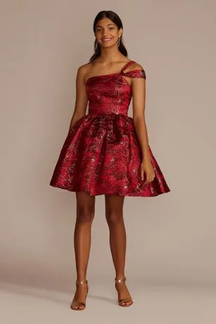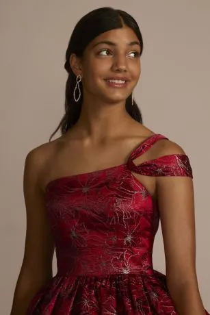 Threads of light-catching metallic weave through this floral-patterned brocade A-line dress. Perfect for any damas on the big day, enhance every twirl by adding an ADDONSLIP.