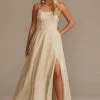 Dripping in shiny satin and glam details, this one-shoulder stunner is ready for your next special occasion. Feel so luxe in a fitted silhouette that hugs your curves just right. Perfect for prom or any spring formal.