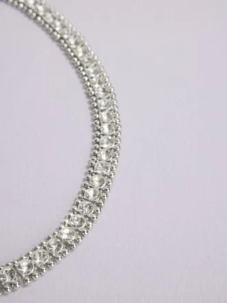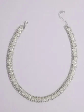 Elegance shines bright with this stretch collar necklace featuring round rhinestones bordered by small beads along the entire strand.