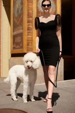 Flirty perfection for date night, GNO, or just because, this crepe LBD comes with a few twists up her gorgeous sleeves. Statement pindot sleeves add volume to the sheath silhouette, while allover ruching shows off your figure.