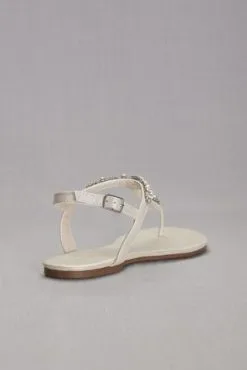 Luxe hippie brides, we have your shoe! This classic two-strap footbed sandal is finished with allover jewels, pearly buckles, and faux-shearling lining to add a cozy finish to all that glam.