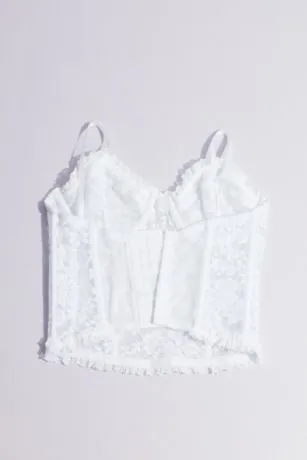 Perfect under your dress, but pretty enough to be seen (peeking out under a jacket or cardi would be cute, don’t you think?) this sheer lace bustier features lined cups and corset boning.
