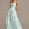 Polka dot organza fabric adds a playful twist to this LBD, complete with a flirty V-neckline and cascading ruffle A-line skirt. Perfect for showing off your style at homecoming.