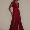 Swirls of sparkling beads define this elegant sheath dress, perfect for any mother of the bride or groom. Illusion short sleeves help the striking design stand out, while a flowy, godet-inset skirt ensures you’ll never blend in.