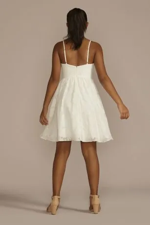 Floral jacquard makes a statement on this short A-line dress perfect for graduation or your upcoming party. The V-neckline is balanced by a youthful skirt for a look that’s equally flirty and fun.