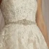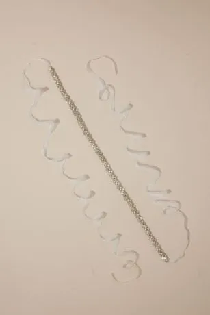 Secured by sheer organza ribbons, this skinny sash is topped with clusters of sparkling beads, gems, and rhinestones that tie up your dream day in the perfect bow.