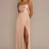 - Long soft mesh bodice has cascading side ruffles and back ruching for a flawless finish.