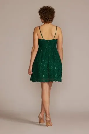 Delicate scalloped detailing at the neckline adds a flirty detail to this lace mini dress. Complete the look with your favorite accessories and shoes!