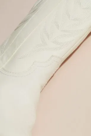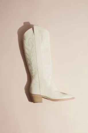 Twirl into your reception in these amazing leather cowboy boots. With a knee-high profile, a pointed toe, and intricate stitching, they’re sure to two-step into your wardrobe after the big day.