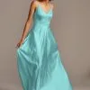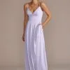 With a glam silhouette, a gorgeous V-neckline, and stretch satin fabric, this bridesmaid dress is truly the one to shine in. Horsehair trim adds definition to the dramatic mermaid skirt, complete with a chapel train.