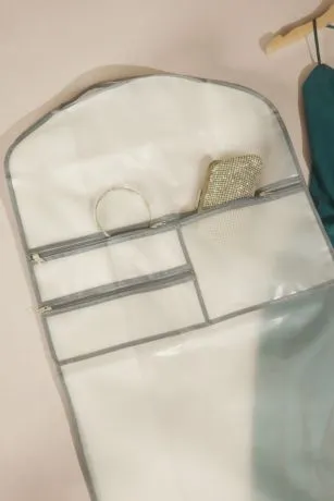 Exactly what you need to get your favorite ‘fit from point A to point B, this waterproof PEVA garment bag features four zipper pockets for jewelry and small accessories, one large zipper pocket for shoes, an ID pouch, and a hanger loop for easy carrying.