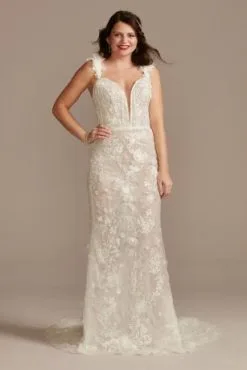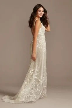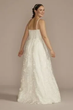 3D Floral Crepe A-Line Wedding Dress With Pockets