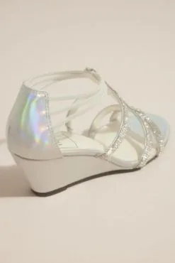 Crystal Pull On Metallic T-Strap Wedge Sandals