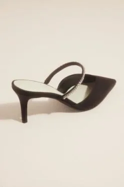 Crystal Strap Pointed Toe Satin Mules