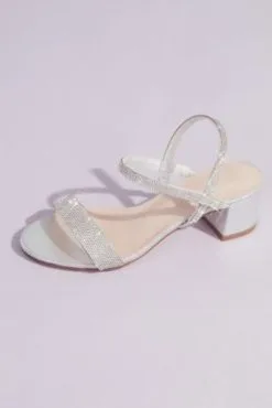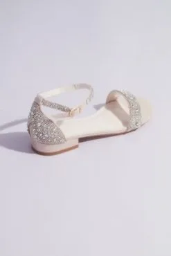 Crystal-Encrusted Stretch Strap Low-Heel Sandals