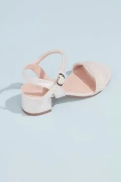 Girls Pearl Beaded Metallic Low-Heel Sandals