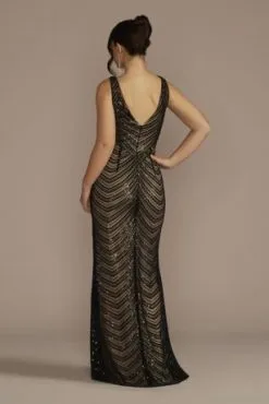 Patterned Sequin Illusion Bodice A-Line With Slit