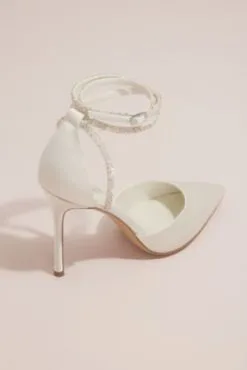 Pearl And Crystal Ankle-Wrap Satin Pumps