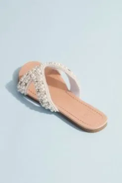Pearl And Iridescent Crystal One-Band Mid Heels