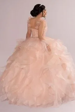 Ruffled Charmeuse V-Neck Long Sleeve Mini Dress