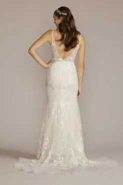 Beaded Lace 3D Floral Plunge Tulle Wedding Dress