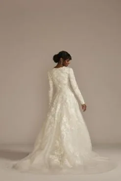Beaded Lace Long Sleeve Modest Wedding Dress