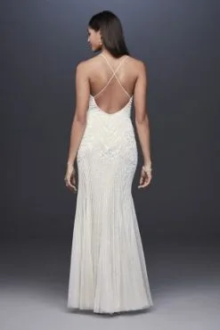 Beaded Stretch Crepe Halter Sheath Wedding Dress