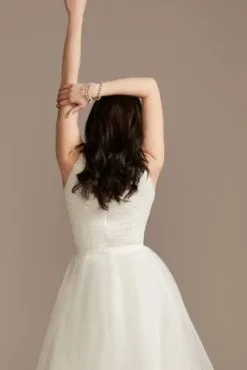 Beaded Strap Low Back Tulle A-Line Wedding Dress