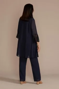 Three Piece Rhinestone Trimmed Chiffon Pantsuit
